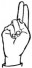 На ћирилици написано ФИЛИП МУМАЛО састоји се из 11 слова [?]. Исписано ћириличном једноручном азбуком за глувонеме: